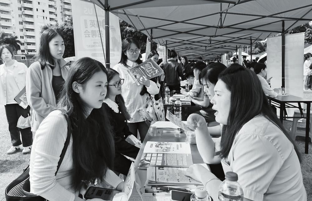 招聘会现场吸引了大量学子前来咨询。