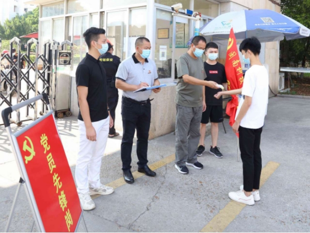 一名党员就是一面旗帜!疫情面前,广大师生党员挺身而出、冲锋在前,在防控一线亮身份、见行动、作贡献,在行动中践行初心、勇担使命。9月14日起,学校实行校园封闭式管理,全面启动线上教学。校党委组织部率先设立疫情防控党员先锋岗,协助校门岗值勤人员做好对入校人员的证件检验、体温检测、三码联查、信息登记与劝返等工作。各党总支和直属党支部纷纷响应,先后成立了11支疫情防控党员服务队,共有347名师生党员主动投身疫情防控各项工作。有机关党员组成的信息摸排队、检测服务队、后勤保障队,有教工党员组成的教学服务队、心理疏导队,有学生党员组成的青年突击队、校园巡查队、食堂督导队,广大师生党员主动请缨,在疫情防控工作中,主动作为、勇担重任,彰显着共产党员的使命担当。