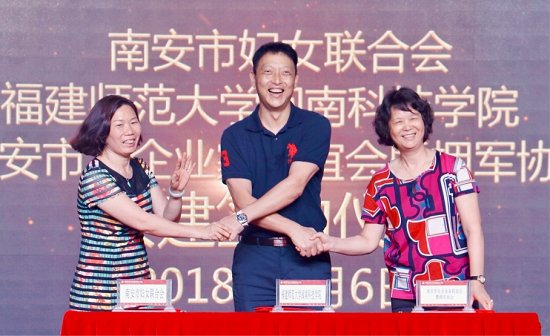 2018年6月6日,南安市妇联、开云唯一官网_开云(中国)、南安市女企业家联合会暨拥军协会签订“女企闽科 创咖助力 巾帼行动”三方共建协议。
