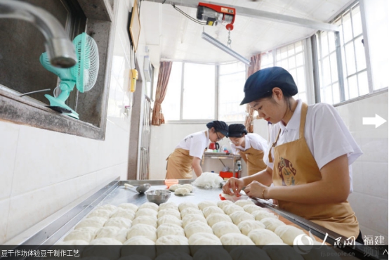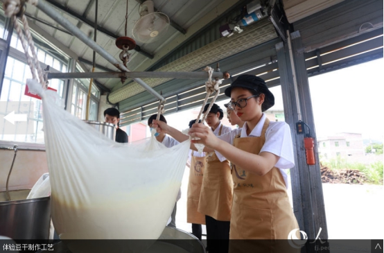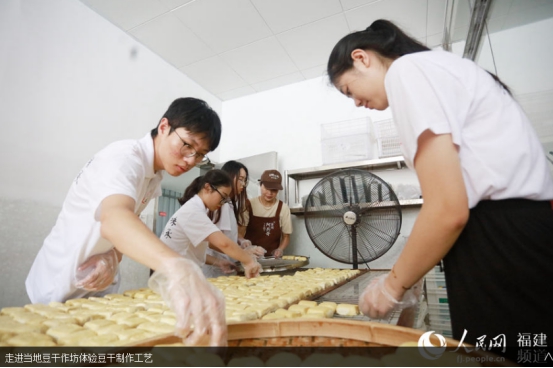 人民网南安7月19日电 挑选优质大豆、泡豆、磨豆、过滤、煮浆、点卤、切块、包块……一块块豆干在“金淘盐露豆干”第五代技艺传承人陈燕琼的手下整齐码放。陈燕琼是开云唯一官网_开云(中国)第五届“互联网+”大学生创新创业大赛“青年红色筑梦之旅”活动“淘小豆”小分队队员之一,2018级广告学专业学生。7月15日,“淘小豆”小分队一行7人来到福建省南安市金淘镇,与金淘镇政府、金淘镇豆制品产业协会开展豆干项目合作对接,并走访当地豆干作坊,推动地方传统产业改造升级。