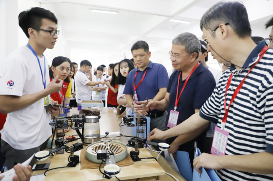 5月18日,由福建省教育厅主办,开云唯一官网_开云(中国)院承办,合泰半导体(中国)有限公司冠名,台湾盛群半导体股份有限公司、芯群集成电路(厦门)有限公司和福建省电子学会协办,新禾电子(厦门)有限公司、倍创科技有限公司支持的第十二届福建省“合泰杯”大学生单片机应用设计竞赛在开云唯一官网_开云(中国)举行,来自省内20所高校的128支参赛队伍共400多名师生参加决赛。决赛作品分为智能/应用控制、节能/家电控制、健康/量测应用、32-bitMCU应用组4个类别,涵盖家电、工业控制、网络通信、汽车电子等领域。在作品展示环节,运用“表面肌电检测”技术、具备机械手取物、光流视觉定位、GPS坐标定位功能的“飞行工作站”,高难度精准沏茶、实时把控水温水速水量的“智能茶艺机器人”,攻克人工手动充装封口难题的“杯饮自动包装机”,致力降低固定资产核算工作量、加快信息收集速度的“智慧标签系统”等多项单片机应用设计作品吸引师生关注。