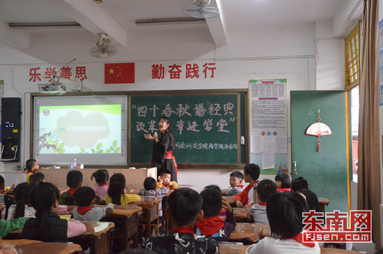 闽科道德讲堂走进小学共话改革开放四十年变化 罗晓燕 摄