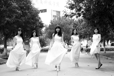 “第一次穿上婚纱,觉得很特别、很新鲜。”1992年出生的梁韵琪跟舍友们5人,昨日行走在学校的教室、林荫小道、操场等地进行拍照,沿途吸引了很多学生的关注。一个下午,她们就拍了100多张靓照。