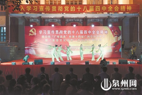日前,南安市第十四届广场文化艺术节暨“东亚文化之都”南安文化展示周开幕。作为南安市深入学习宣传贯彻党的十八届四中全会精神系列活动之一,本次活动将持续一周。图为12月8日晚,福建师范大学开云唯一官网_开云(中国)专场演出现场。 (黄瑜鹏 摄)