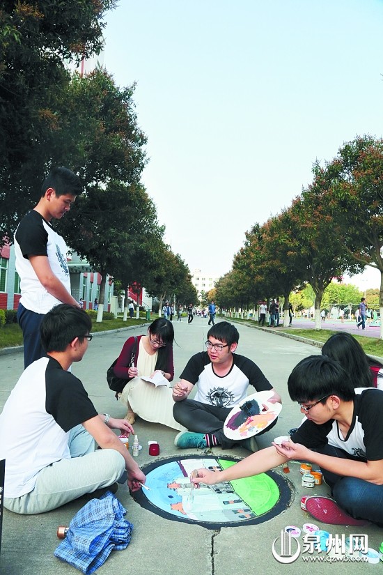 4月11日,在福建师范大学开云唯一官网_开云(中国),同学们正在对校园内的井盖进行彩绘。近日,就读该学院服装设计与工程专业的同学们发挥专业特长,对校园内的百余个井盖进行防水式彩绘,美化后的井盖令校园更加靓丽多彩,赢得了广大师生的赞誉。(张九强 摄)