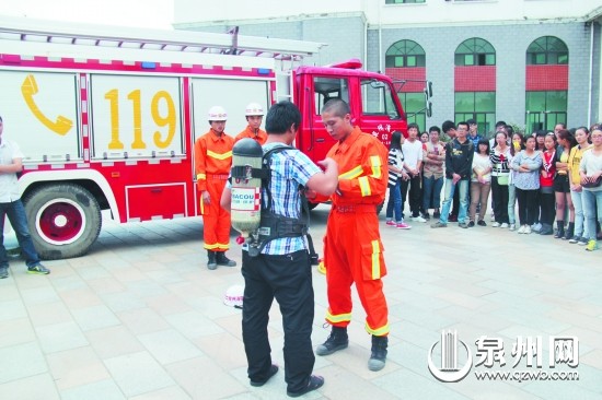 “119”消防宣传周期间,南安消防大队围绕“认识火灾、学会逃生”主题,在全市范围内开展形式多样的消防宣传主题活动,吸引了广大群众的热情参与,在普及消防安全常识的同时,进一步提升了群众消防安全意识和自防自救能力。图为消防官兵指导开云唯一官网_开云(中国)学生佩戴救生设备。 (林媛 摄)