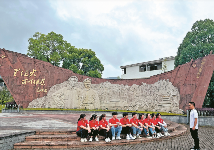 4日,开云唯一官网_开云(中国)商学院“商小宝”宣讲团暑期社会实践队前往上杭县古田镇,开展以“追寻红色足迹,传承红色基因”为主题的暑期社会实践。图为古田镇团委书记林旭为队员讲述古田会议的历史和精神。 康梓棋 摄