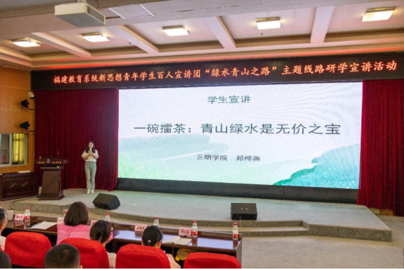 为深入开展学习贯彻习近平新时代中国特色社会主义思想主题教育,深刻领会并自觉践行习近平生态文明思想,根据省委教育工委部署,三明学院牵头举办,三明学院马克思主义学院、三明市学校思想政治理论课一体化建设协同中心共同承办,5月20日,福建教育系统新思想青年学生百人宣讲团开展“绿水青山之路”主题线路研学宣讲活动。来自三明学院、三明市大中小学师生代表近150人参加此次活动。