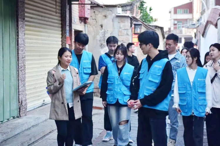 在泉州金鱼巷,校团委“青马工程”学员实践队对泉州古城街巷进行实地考察和实践,深入了解泉州金鱼巷从“微改造”到采用“以修代租”的模式变革,通过本土文化活动的经营、原真活化业态的植入以及各社会组织的进入,让历史文化和现代生活融为一体,促进历史文化遗产保护、传承、发展。