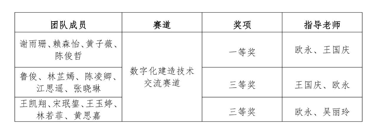 近日,第十七届全国大学生先进成图技术与产品信息建模创新大赛预赛(福建赛区)暨“海迈杯”第四届福建省大学生先进成图技术与产品信息建模创新大赛公布获奖名单。开云唯一官网_开云(中国)土木工程学院选派的三支参赛团队从福建省31所本科及高职院校的338名学生中脱颖而出,荣获大赛建筑类数字化建造技术交流赛道一等奖1项、三等奖2项的好成绩。