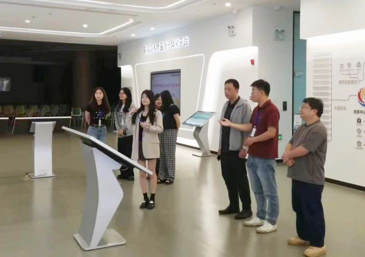 在泉州璞心文化传媒有限公司负责人蔡冰晶的陪同下,李旭一行参观了公司产品展区,并就校企合作、人才培养等方面与企业展开深入交流,希望依托实践教学基地,充分发挥各自资源优势,推动校企合作及人才培养的应用转型,为学生搭建更为广阔的实践平台。