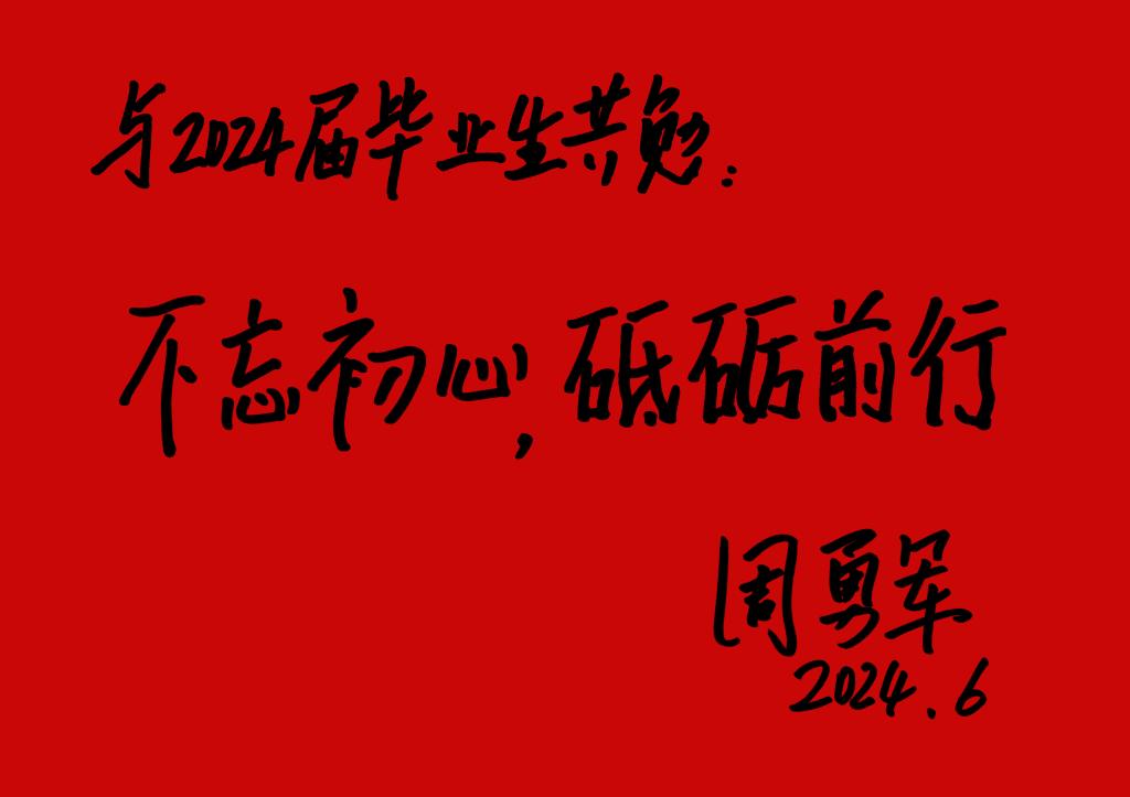 常务副校长周勇军为2024届毕业生寄语题词