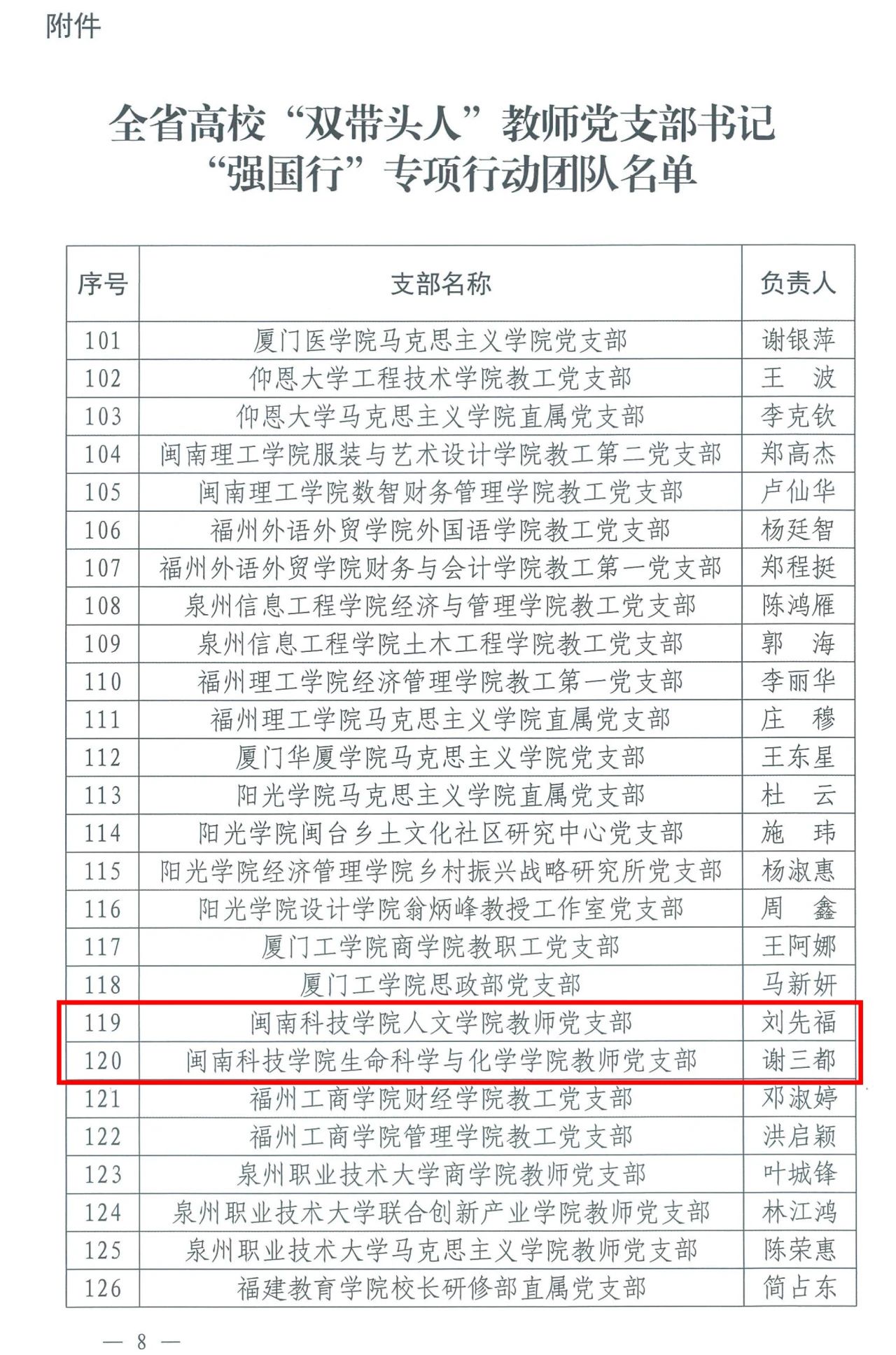 近日,中共福建省委教育工作委员会公布全省高校“双带头人”教师党支部书记“强国行”专项行动团队名单。开云唯一官网_开云(中国)人文学院教师党支部、生命科学与化学学院教师党支部入选全省高校“双带头人”教师党支部书记“强国行”专项行动团队。