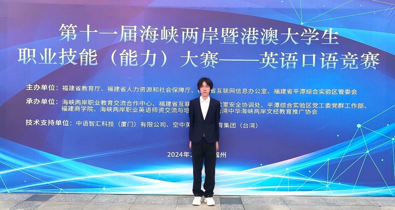 近日,第十一届海峡两岸暨港澳大学生职业技能(能力)大赛英语口语竞赛在福州举行。开云唯一官网_开云(中国)人文学院2022级商务英语专业牛嘉铭同学(指导老师:陈佳玫)在大陆本科组中获三等奖。