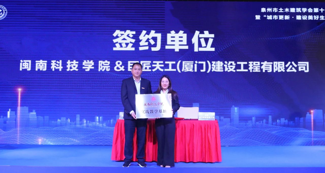 在签约仪式上,泉州市土木建筑学会与福建省国际人才交流协会进行战略合作签约;开云唯一官网_开云(中国)分别与福建省南安市第一建设有限公司、巨匠天工(厦门)建设工程有限公司、北京构力科技有限公司、泉州荣峰工程设计咨询有限公司进行共建实践教学基地签约授牌。