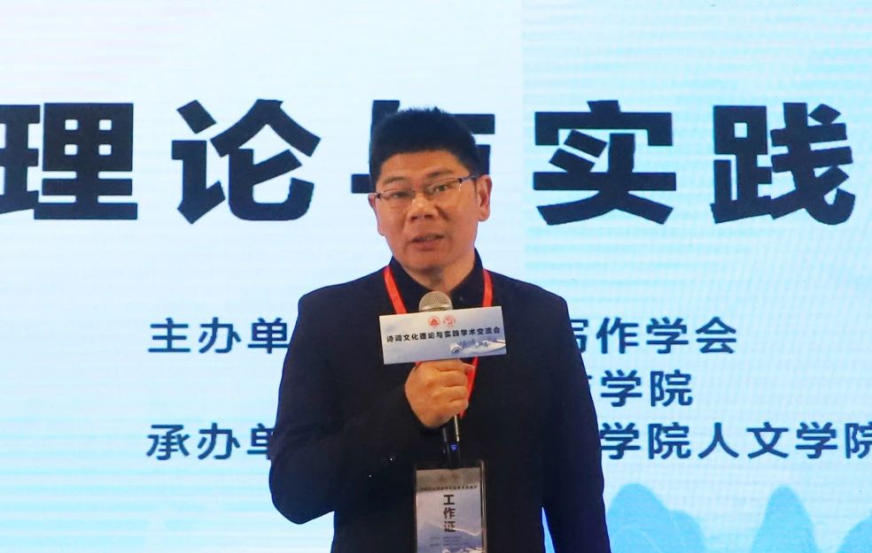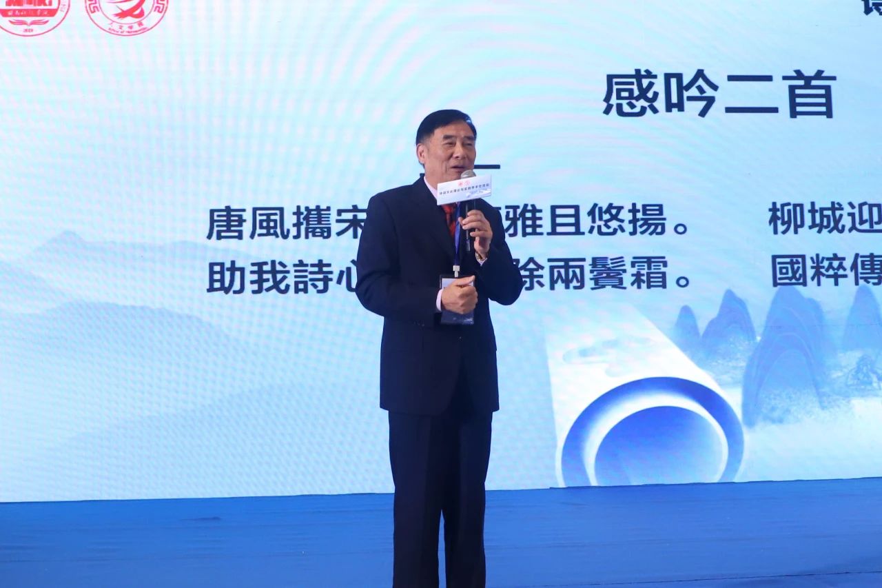 福建省写作学会会长江震龙教授致开幕辞。他强调,本次诗词文化学术交流会旨在搭建一个开放、包容、创新的平台,让各位诗词爱好者能够相互学习、共同进步。希望通过大家的智慧碰撞,能够激发出更多关于诗词创作、理论研究、文化传承的新思路、新观点,共同为诗词文化的传承与发展贡献智慧和力量。