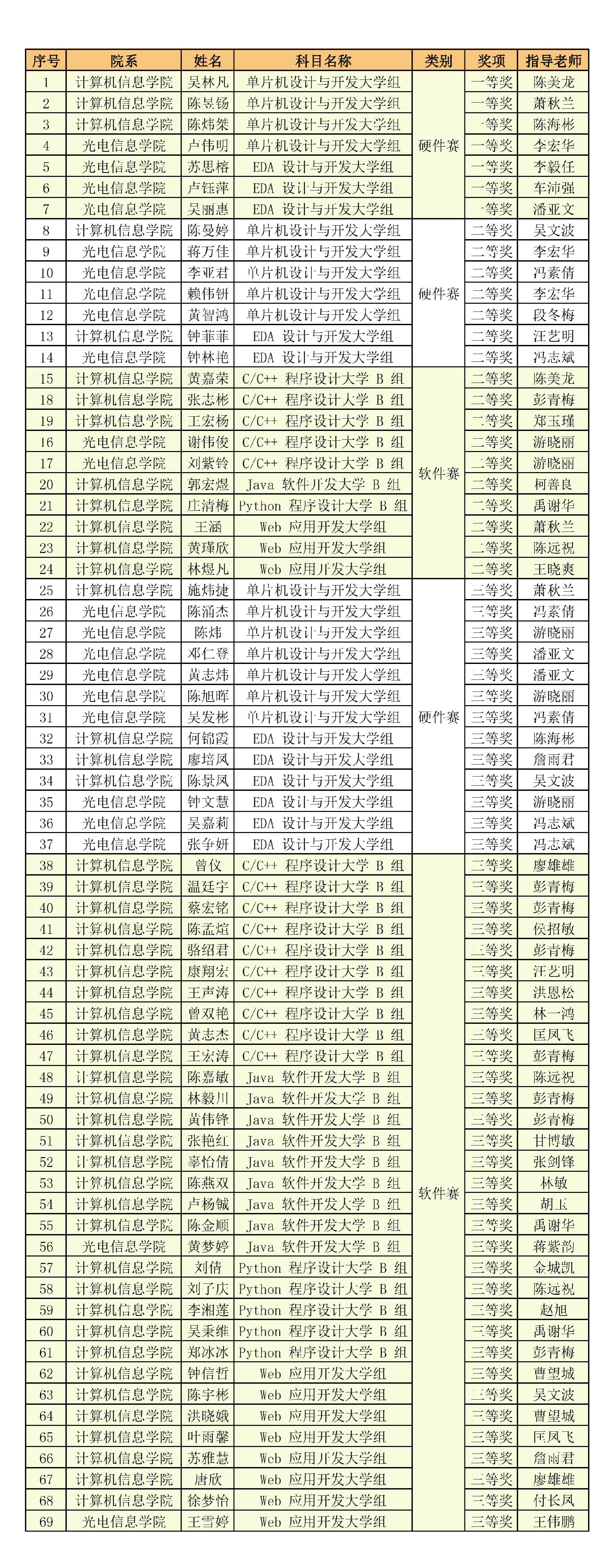 第十六届蓝桥杯全国软件和信息技术专业人才大赛个人赛省赛福建赛区获奖名单