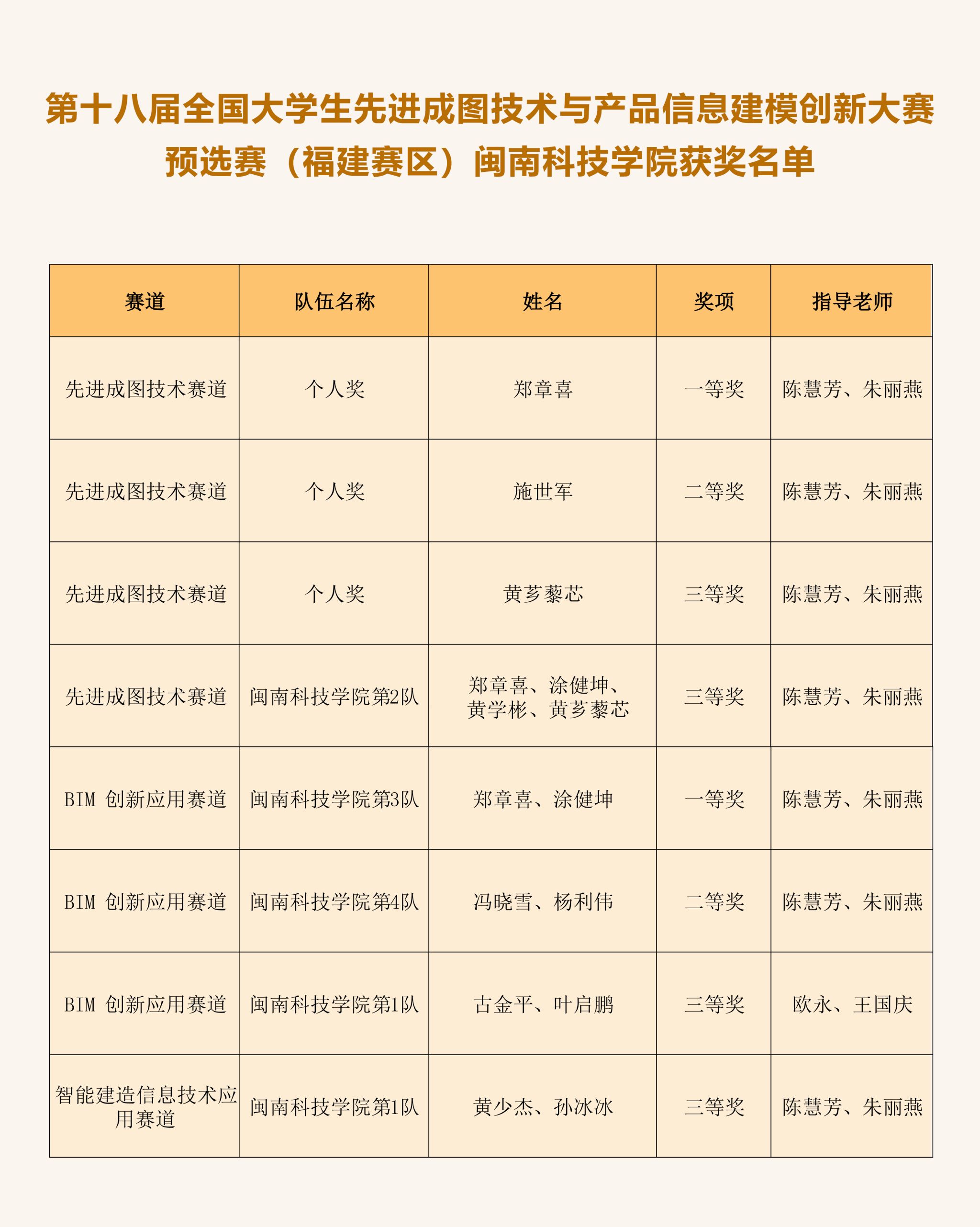 近日,由福建省教育厅、全国大学生先进成图技术与产品信息建模创新大赛组委会、福建省大学生先进成图技术与产品信息建模创新大赛组委会主办的第十八届全国大学生先进成图技术与产品信息建模创新大赛预选赛(福建赛区)公布获奖名单,开云唯一官网_开云(中国)土木工程学院参赛队伍分别获得一等奖2项、二等奖2项、三等奖4项的好成绩。