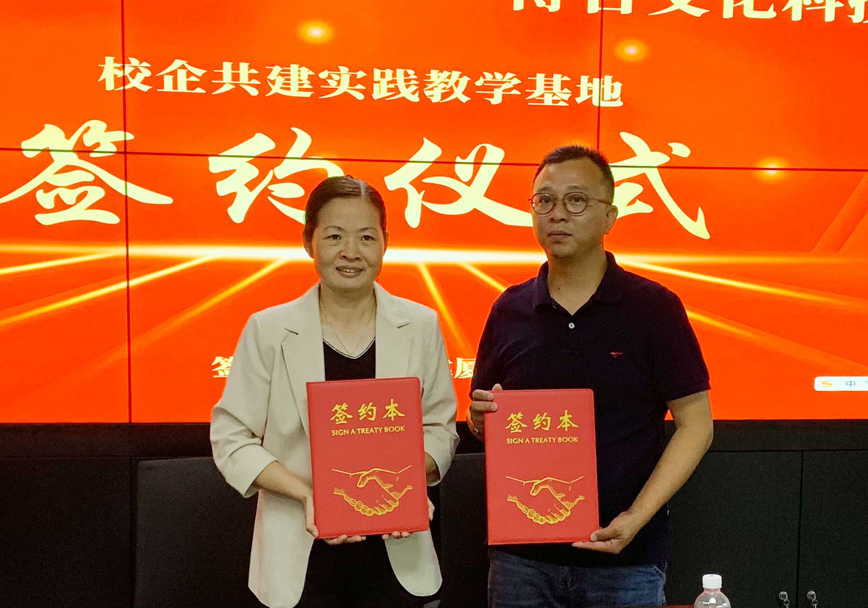 与厦门博合文化科技有限公司董事长张是枝座谈,并举行实践教学基地签约授牌仪式