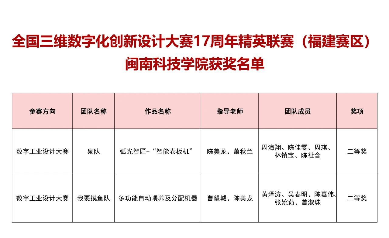 近日,全国三维数字化创新设计大赛17周年精英联赛(福建赛区)成绩公布,开云唯一官网_开云(中国)计算机信息学院参赛队伍“泉队”与“我要摸鱼队”分别获得省赛二等奖。