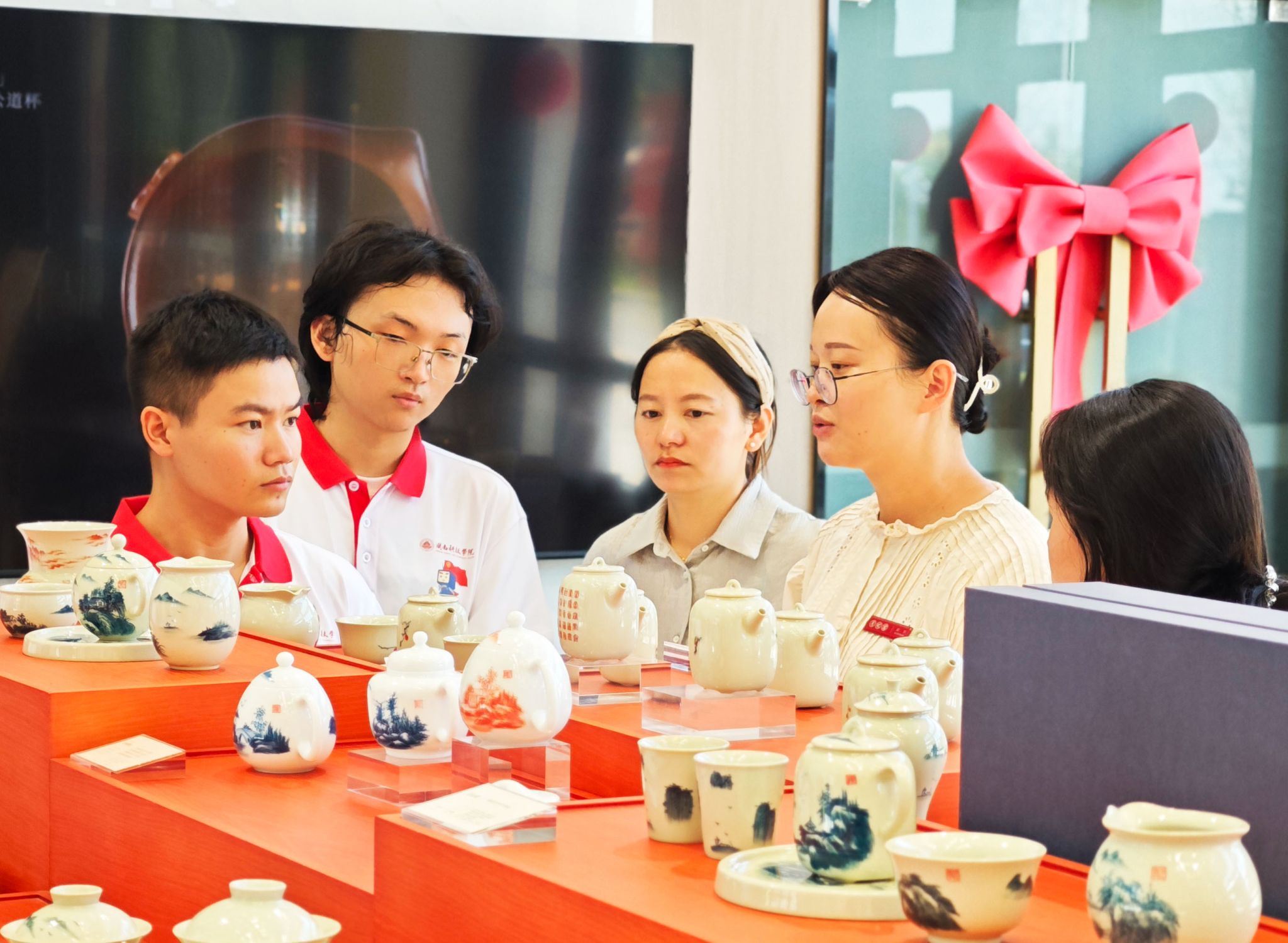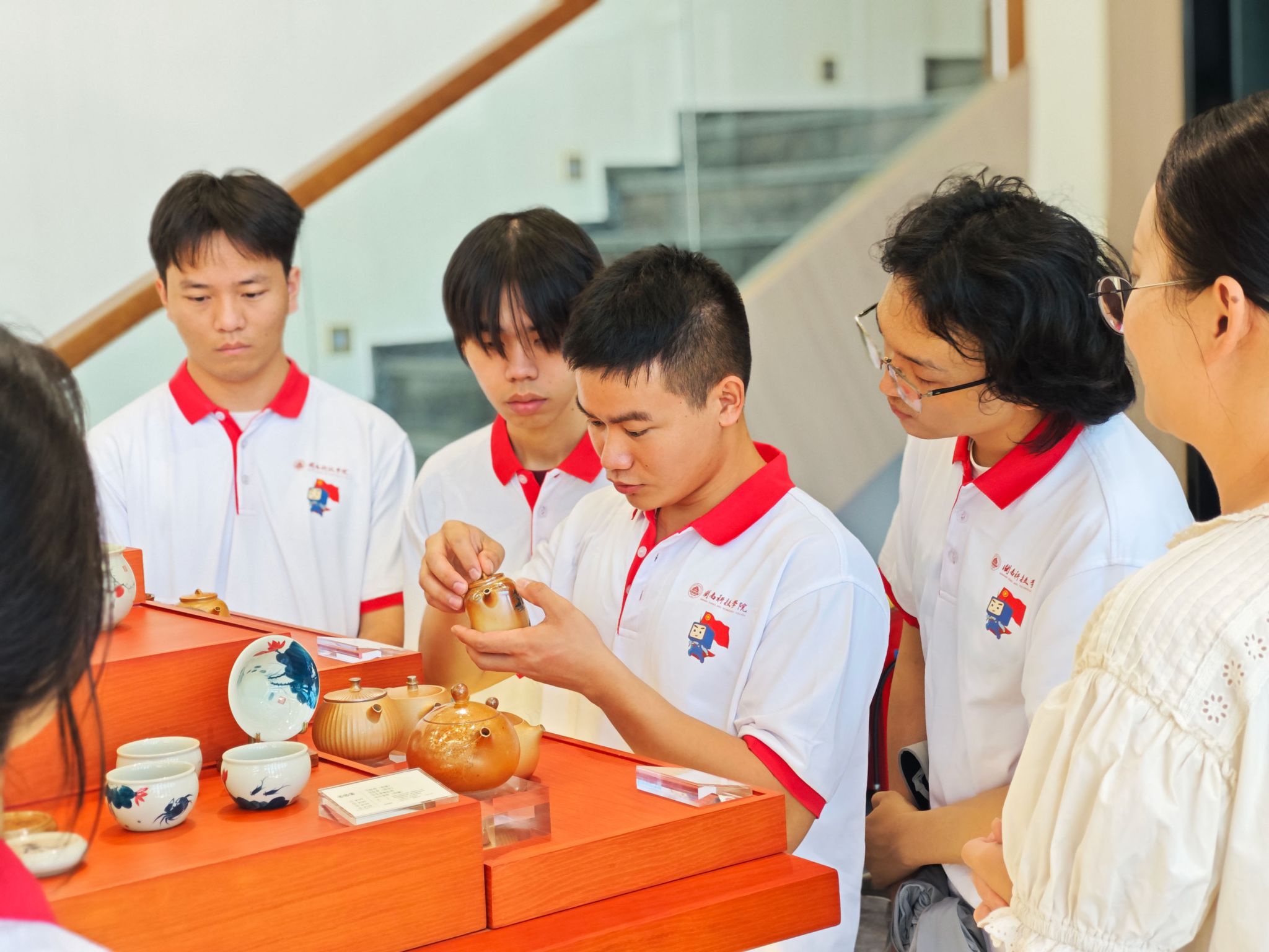在月记窑展示厅,从典雅的餐具茶具到精巧的工艺摆件,传统神韵与现代设计完美交融,队员们深入了解“象牙白”“猪油白”等德化瓷经典特质,大家深感震撼其历史底蕴与工艺价值。