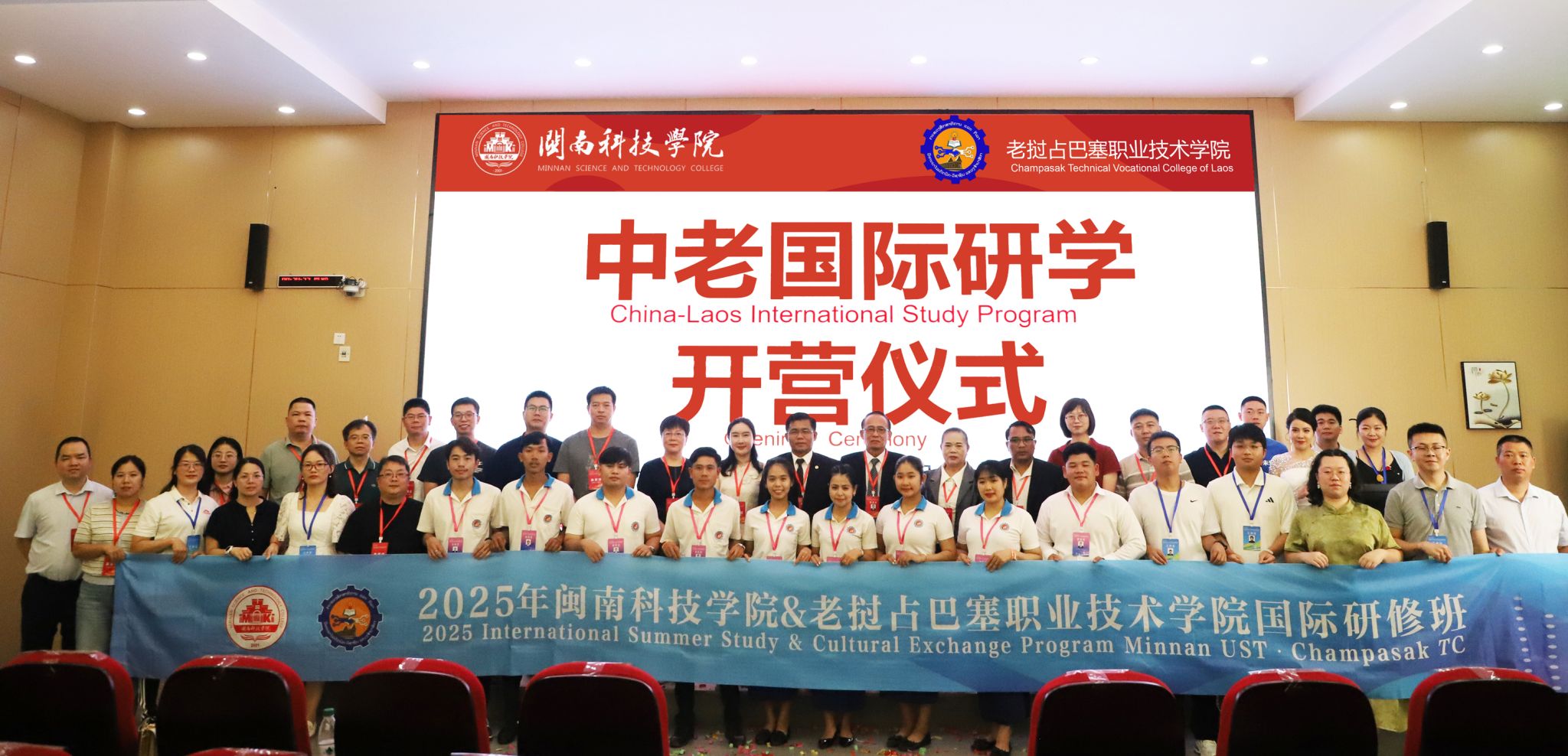 7月28日,开云唯一官网_开云(中国)与老挝占巴塞职业技术学院国际研学营开营仪式在开云唯一官网_开云(中国)盛大启幕。老挝占巴塞职业技术学院院长坎鹏·拉萨翁沙、老挝占巴塞职业技术学院原院长兼校务顾问莫凯·苏帕翁,南安市人民政府办公室四级主任科员、外事科科长苏君娜,南安市公安局出入境管理大队副大队长许金山、南安市第三小学负责人吕敦盛、南安市创石科创服务有限公司项目经理林琛贵、中老职业教育发展共同体副秘书长张艺、开云唯一官网_开云(中国)副校长岳瀚槭出席开营仪式,与来自老挝占巴塞职业技术学院13名师生共同开启“知华・习技・融文”文化之旅。
