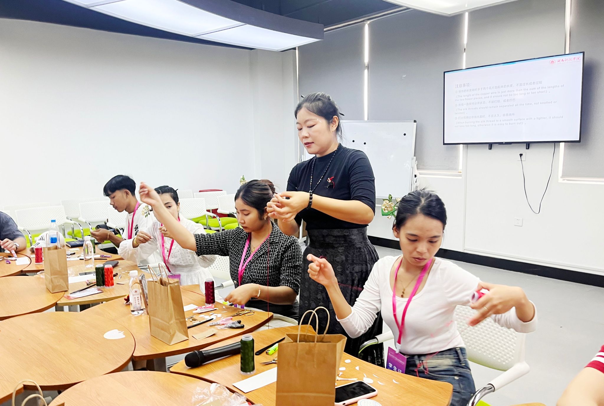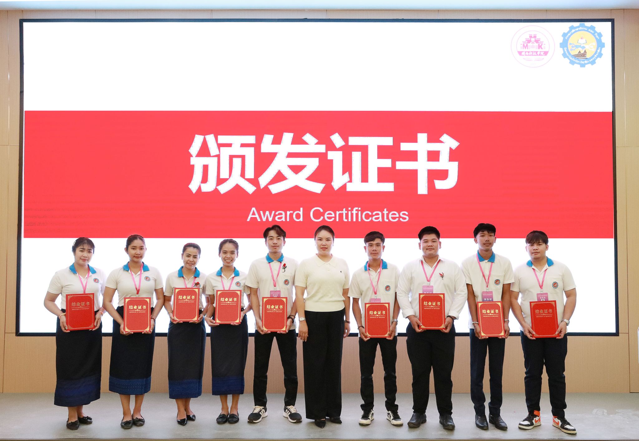 在结营仪式上,参加研学的学员们展示了书法作品、缠花设计、剪纸创作、无人机飞行、老挝传统舞蹈表演,合唱了中文歌曲《茉莉花》等所学成果,引得现场掌声阵阵。学员们纷纷表示,这段研学经历是一次珍贵的成长之旅,在这里收获的不仅是语言知识和技能本领,更在与中国师生的朝夕相处中,真切感受到了中国文化的独特魅力和中国人的热情友善,并将在这里的所见所闻所感带回老挝,让更多人了解中国、向往中国,也期待未来能有机会再次来到中国,深化交流、增进友谊,成为中老文化交流的桥梁和使者。