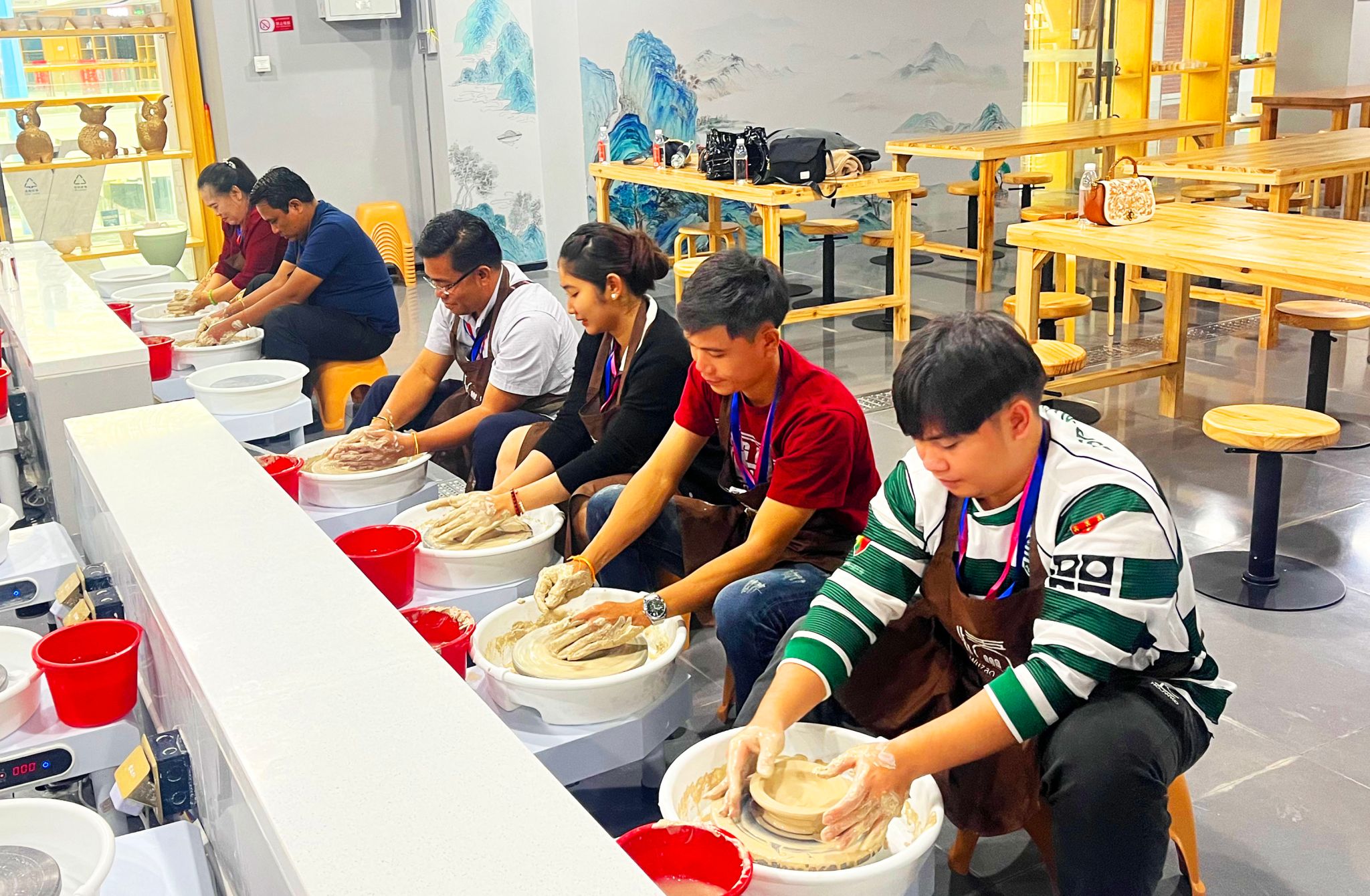 在文化体验中,学员们在艺术设计学院、计算机信息学院和人文学院教师的指导下,亲身体验剪纸、缠花课程,赴泉州德化领略陶艺制作,从揉泥开始,到拉坯操作,近距离接触德化陶艺文化,深度感受中华优秀传统文化的深厚底蕴。