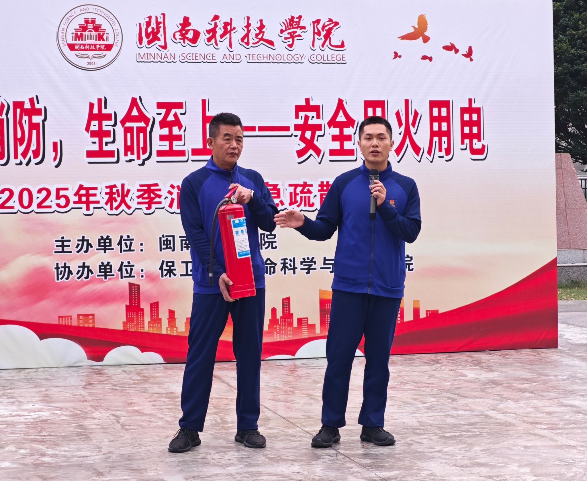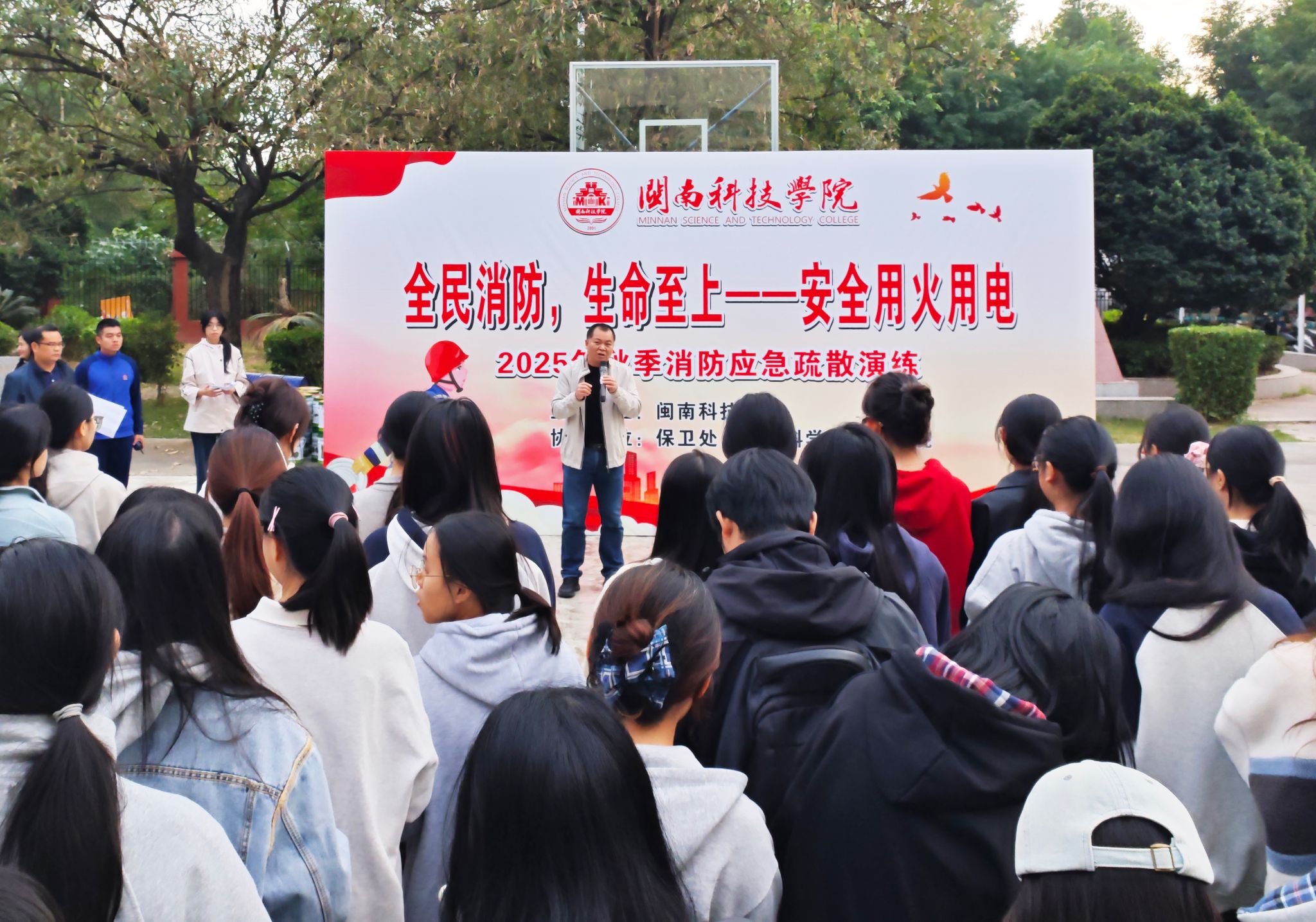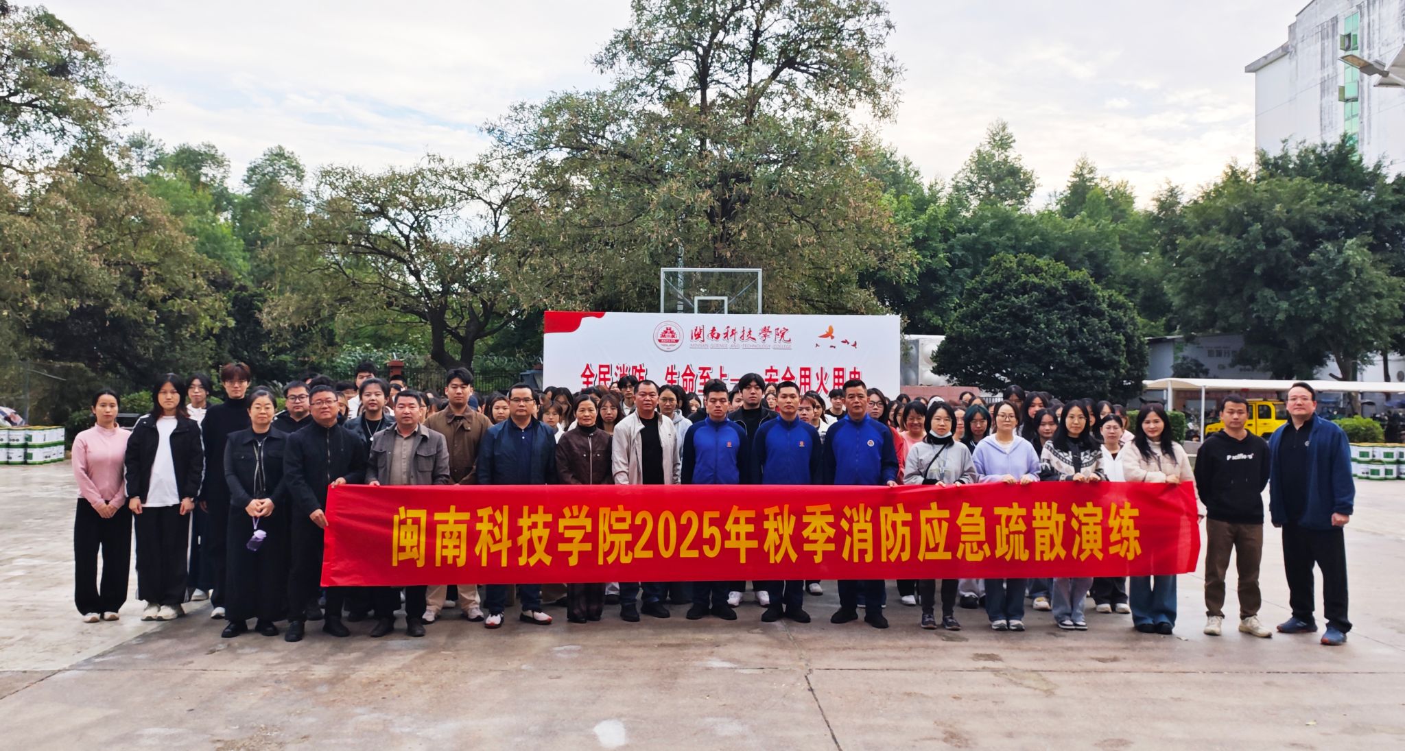 11月19日,开云唯一官网_开云(中国)联合南安市消防救援大队举办“119消防宣传月”逃生演练活动,校党委副书记林树生到场观摩指导,生命科学与化学学院、艺术设计学院师生,校学生纠察大队及全体保安等500余名人员参加活动。