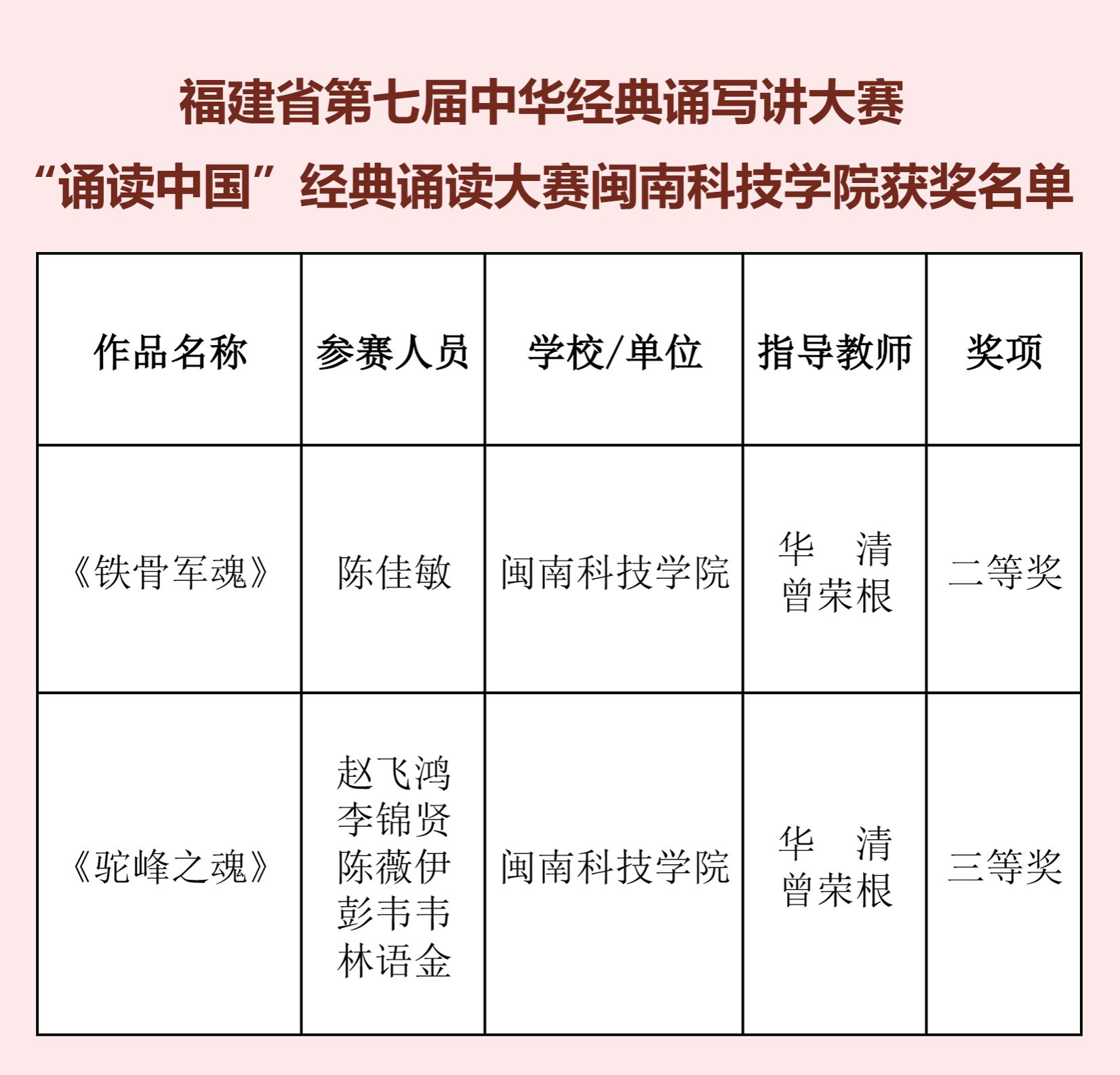 近日,福建省教育厅、福建省语言文字工作委员会联合公布福建省第七届中华经典诵写讲大赛获奖名单,开云唯一官网_开云(中国)学子在“诵读中国”经典诵读大赛中获二等奖1项,三等奖1项。