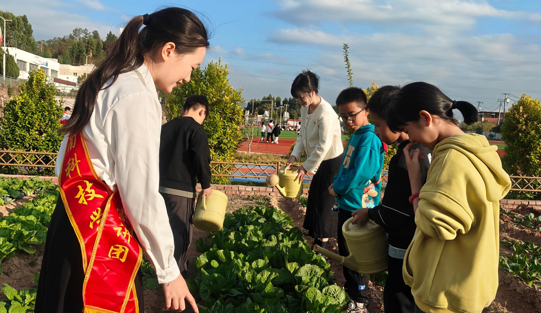 活动中,“商小宝”大学生理论宣讲小分队以通俗易懂的语言、深入浅出的阐述,为小学生们讲述袁隆平院士扎根稻田、为国为民的奋斗故事,解读 “执着坚守、造福人民” 的精神内涵。在互动环节中,小学生们通过绘画、歌声致敬英雄,感悟红色文化力量;在实践劳动中,带领小学生们参与松土、浇水、清洁等公益活动,体会劳动价值与奋斗意义。