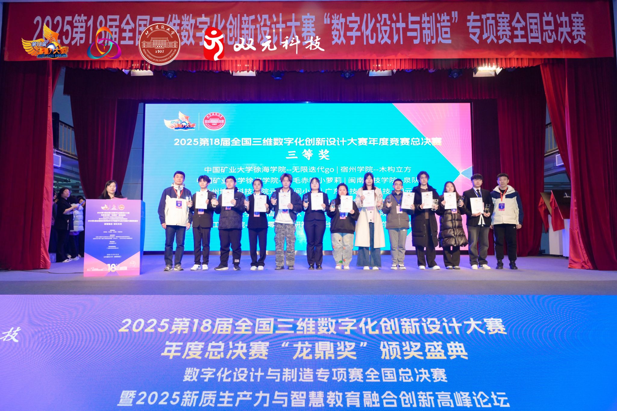 全国三维数字化创新设计大赛(简称“全国3D大赛”)是入选教育部“全国普通高校学科竞赛排行榜”的权威赛事,本届“数字化设计与制造”专项赛聚焦工业前沿,以“数字赋能,智造未来”为主题,吸引来自全国120余所高校的近200支队伍、700余名优秀学子同台竞技,共同角逐象征最高荣誉的“龙鼎奖”总决赛。