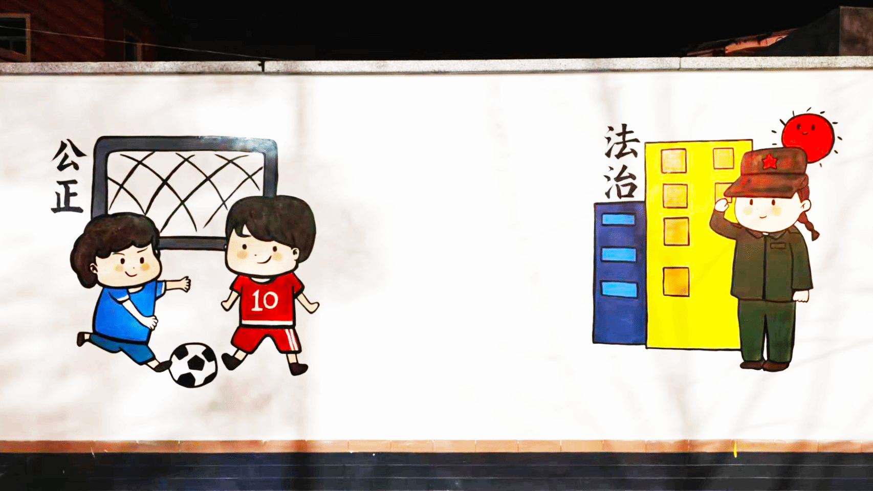 在露江村委,实践队以“执青春之笔,‘绘’就乡村振兴新画卷”主题,聚焦“党建文化”“社会主义核心价值观”“中华优秀传统文化”“反腐倡廉”内容,以110余平方米墙面为载体,运用漫画、标语、传统纹样等艺术形式,将文明新风、廉洁理念、党建精神融入乡村景观。原本朴素的墙面焕然一新,成为传播正能量、涵养乡风民风的文化阵地,吸引不少村民驻足观看、打卡留念。