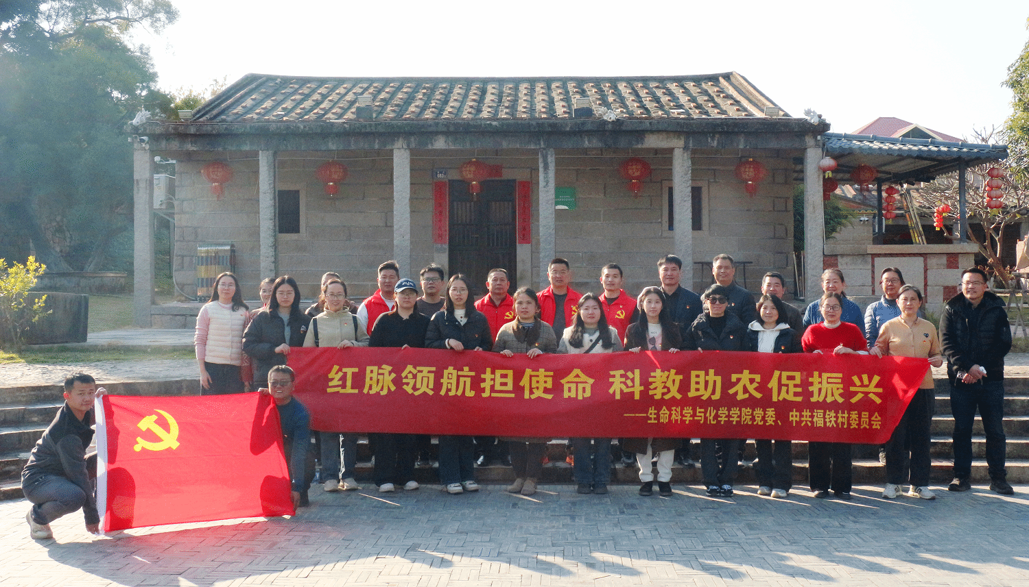 1月10日,生命科学与化学学院先后走进南安市洪濑镇福林村、南安市康美镇福铁山庄开展“寻根铸魂守初心 立德修身担使命”“红脉领航担使命 科教助农促振兴”主题党日活动,30余名教师党员参加活动。