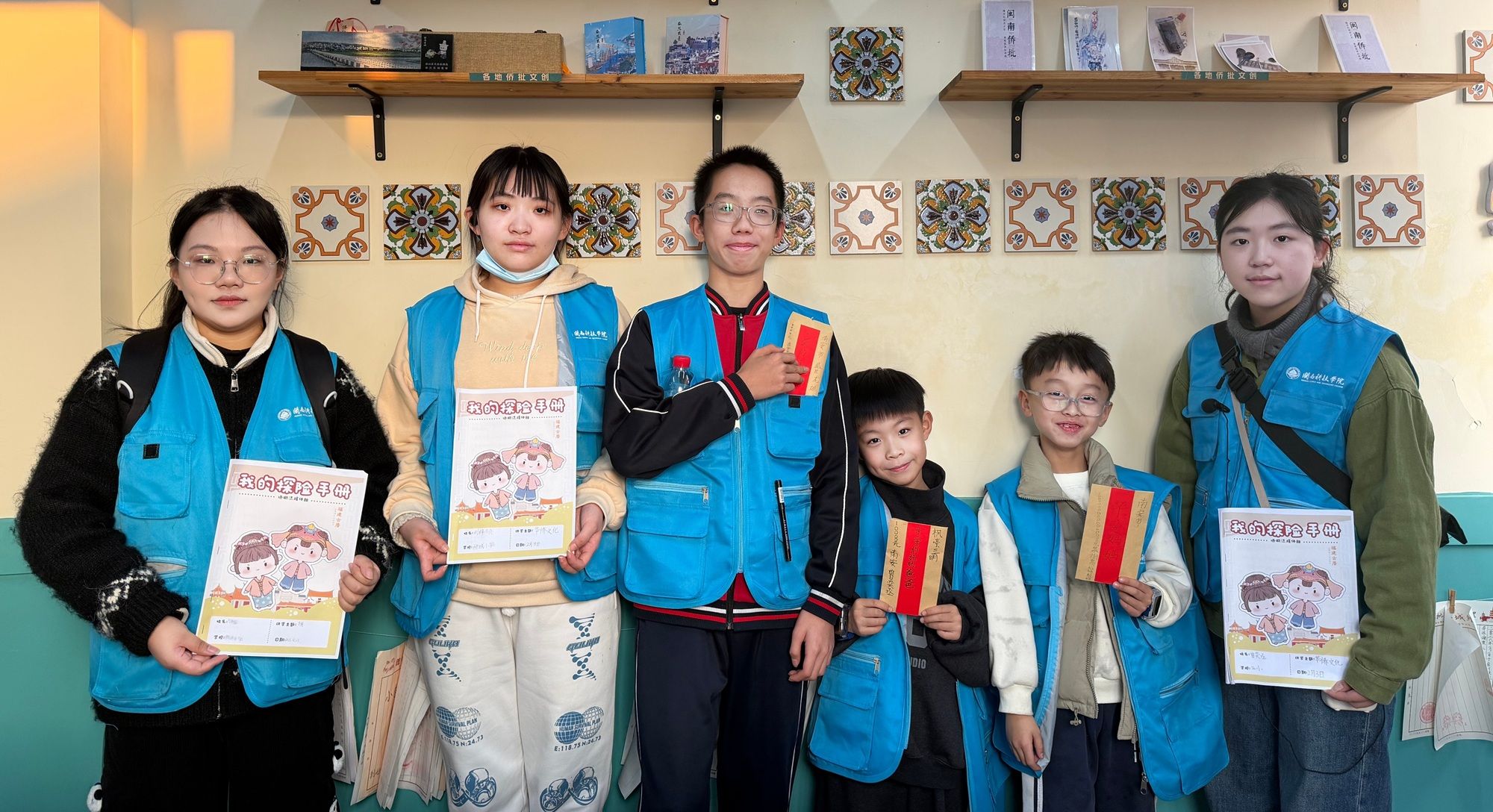 实践队赴南安市蓬华镇珠安楼,聆听华侨捐资兴学、扶助乡里的事迹,丰富创作素材。下午进入成果输出阶段,一队在青少年活动中心开展《认识侨批里的家国情怀》公益课堂,通过主题讲授与“写当代侨批”环节,形成可推广课程包;另一队运用自主开发的《我的探险手册》研学包,引导青少年在侨批馆开展沉浸式研学,验证馆校联动产品的可行性。