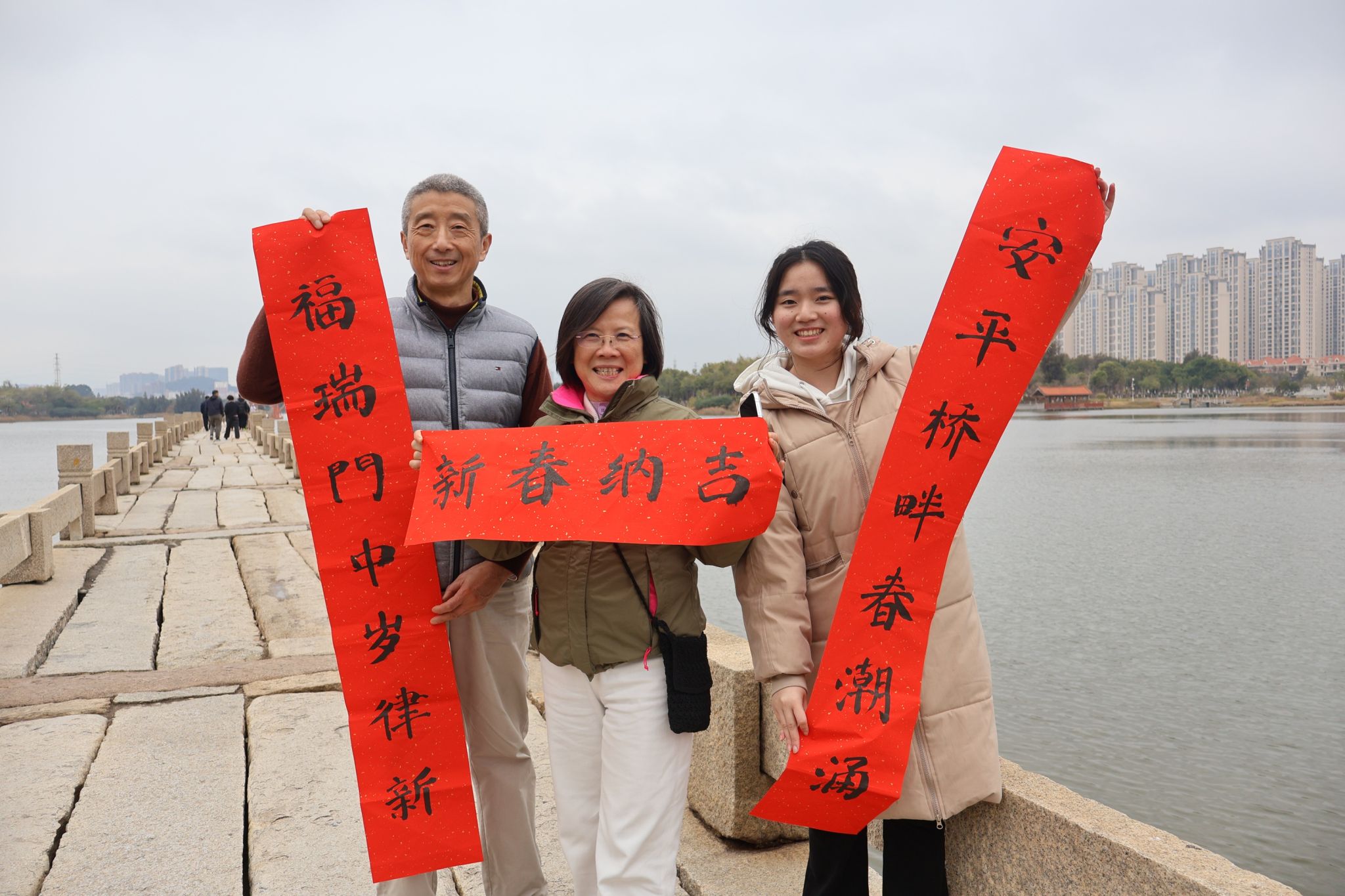 素有“天下无桥长此桥”之称的安平桥,是古代海上丝绸之路的重要交通枢纽。队员们漫步千年石桥,触摸岁月冲刷的石板、凝望栩栩如生的石狮子,在一砖一石间感受古桥的独特历史价值。队员们手持亲手书写的春联,为游客送福的同时讲解安平桥历史典故,让更多人领略古桥魅力,推动“海丝名城、活力晋江”的品牌形象深入人心。