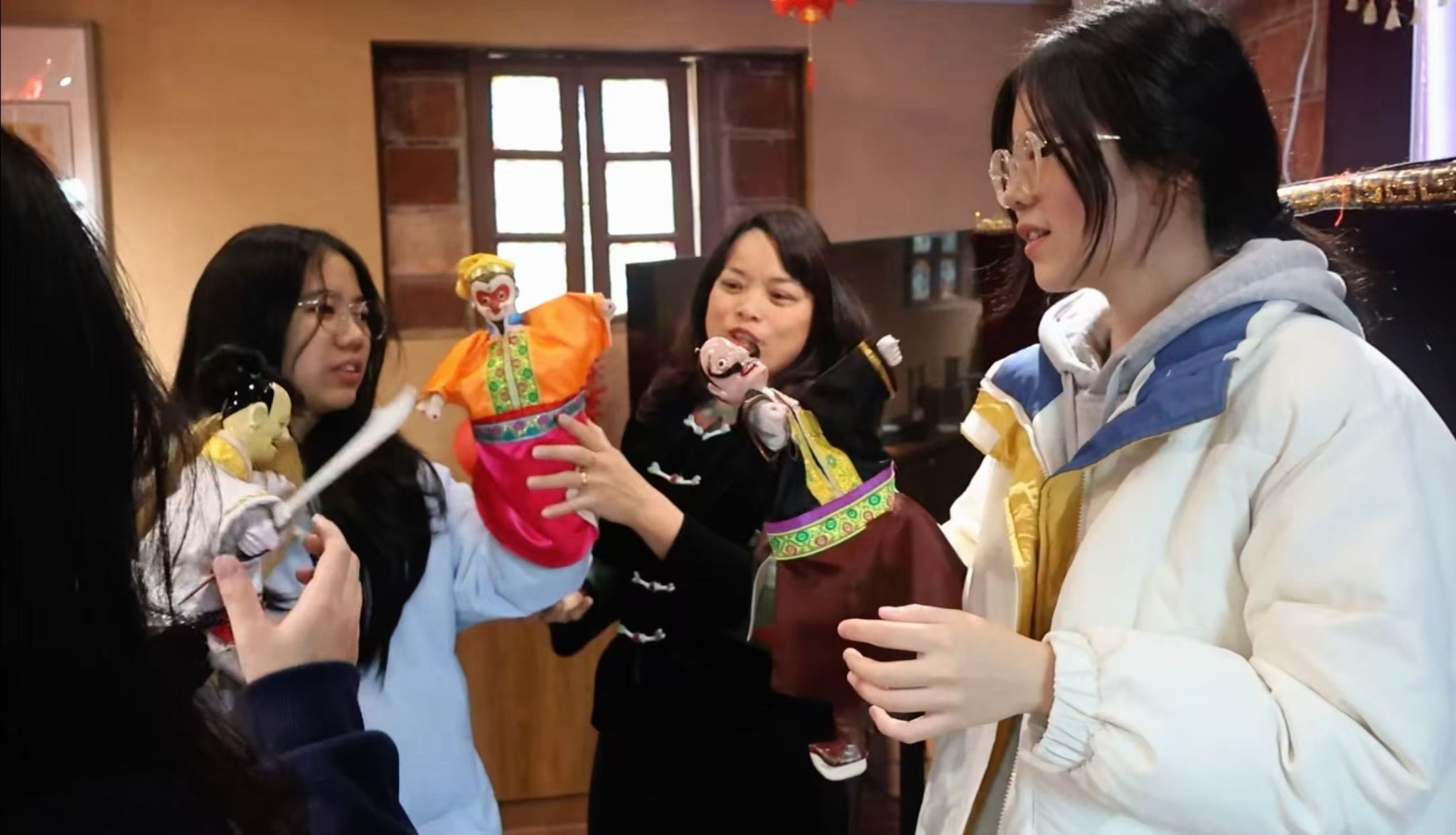 梧林传统村落作为晋江侨乡文化的鲜活载体,凝萃着闽南侨韵与古建之美。队员们踏行青石板路,品读红砖墙、燕尾脊、番仔楼的时光故事,感悟华侨先辈的家国情怀与创业担当,读懂晋江“爱拼敢赢、开放包容”的精神内核。在古村,队员们近距离邂逅国家级非遗泉州布袋木偶戏,观摩艺人精湛技艺、亲手体验木偶操控,沉浸式感受千年非遗的匠心;恰逢马年新春将至,队员们为游客送上春联祝福,让闽南文脉与新春年味相融,温润群众心间。
