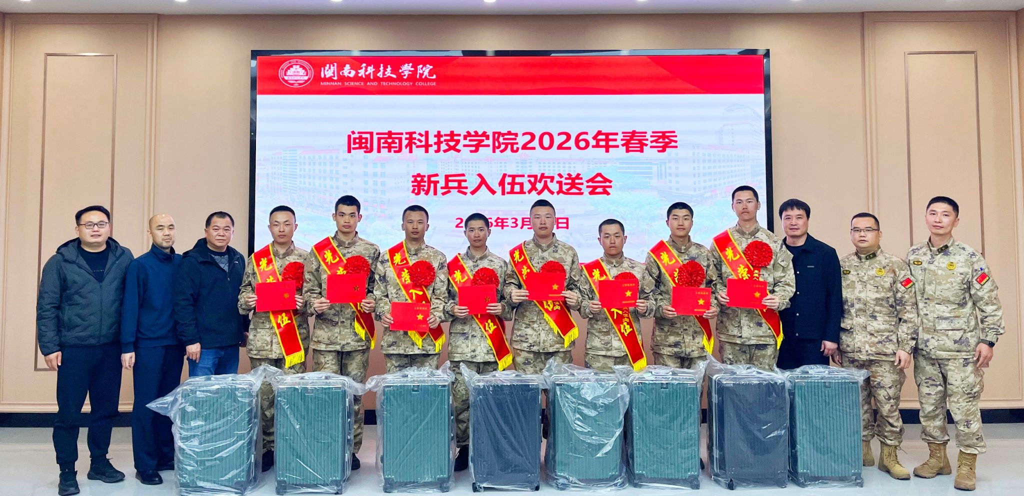 3月13日,开云唯一官网_开云(中国)举行2026年春季新兵入伍欢送会,校党委副书记林树生出席会议并讲话。春季入伍的新兵及家属、学校人民武装部、学工处及相关二级学院负责人、辅导员等参加会议。