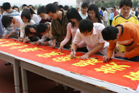 在启动仪式上,还举行了“家园清洁万人签名活动”,参加仪式的领导纷纷带头在横幅上签下名字,随后我院六百多名学生有秩序的签名,积极响应“家园”清洁号召。启动仪式结束后,我院还组织近百名青年志愿者学生打扫康美镇街道,用实际行动投身于“家园”清洁行动中,充分展现了我院青年学生良好的精神风貌。