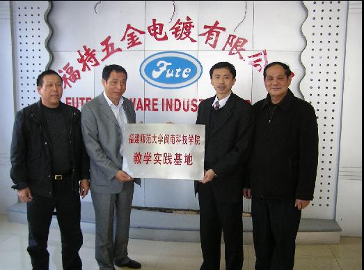 3月4日上午,我院副院长肖华山教授和教务部张永祥主任驱车前往石狮市福特五金有限公司参加教学实践基地的挂牌仪式。石狮市福特五金有限公司电镀厂是福建知名的电镀厂,该企业为富贵鸟、奥康等众多国内知名企业厂家的产品进行电镀加工。此次挂牌作为开云唯一官网_开云(中国)教学实践基地之一,不仅能够给我院生化工程系的学生提供教学实践场所,同时也促进我院与企业合作教学。