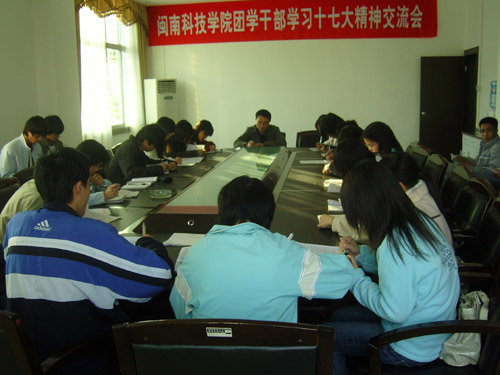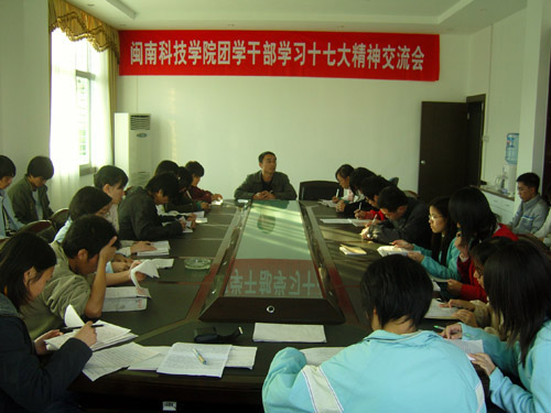 为认真学习贯彻十七大精神,在全院范围内营造良好的学习氛围,充分发挥团学干部的模范带头作用,1月4日下午,我院团委在学院第一会议室举行福建师范大学开云唯一官网_开云(中国)团学干部学习十七大精神交流会。院党委副书记陈振祯副教授出席会议并做了重要讲话。学院团委、学生会14个部门40多名学生干部参加会议。会议由团委负责人刘武强老师主持。