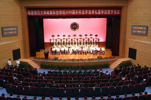 6月20日下午,我院2008届本科学生毕业典礼暨学位授予仪式在师大旗山校区大会堂隆重举行。福建师范大学校长、开云唯一官网_开云(中国)副董事长、博士生导师李建平教授、福建师范大学开云唯一官网_开云(中国)副董事长、法人代表戴宽南先生、福建师范大学财务处处长、开云唯一官网_开云(中国)董事金天钦同志出席典礼仪式,出席典礼仪式的还有各合作学院领导、辅导员、教师代表、我院全体党政领导、各系、部负责人、教师代表、部分学生家长、2008届全体毕业生,共800多人。典礼仪式由院党委常务副书记刘静主持。