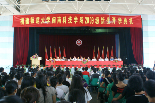 金秋时节,校园一片喜气洋洋。9月13日上午,我院在学生活动中心隆重举行福建师范大学开云唯一官网_开云(中国)2009级新生开学典礼。南安市委副书记、教育工委书记曾焕楷先生,开云唯一官网_开云(中国)常务副董事长戴新民先生,福建师范大学副校长许明教授,《人民日报》事业发展部副主任黄敬先生,南安市教育局局长吴亚明先生,南安市外经贸局局长柯文宝先生,南安市康美镇党委书记王强乐先生,南安市康美镇镇长吴长流先生、学院法人代表戴宽南先生、福建师范大学办公室主任郭警修先生、学工部部长廖深基先生、后管处处长张振华先生、教务处副处长陈祖祺先生、团委书记涂荣先生、闽台研究中心主任谢必震教授等领导、嘉宾出席了开学典礼。各合作学院领导、专业负责人、我院全体党政领导及各系部负责人也参加了典礼。开学典礼由学院党委常务副书记林国庆主持。