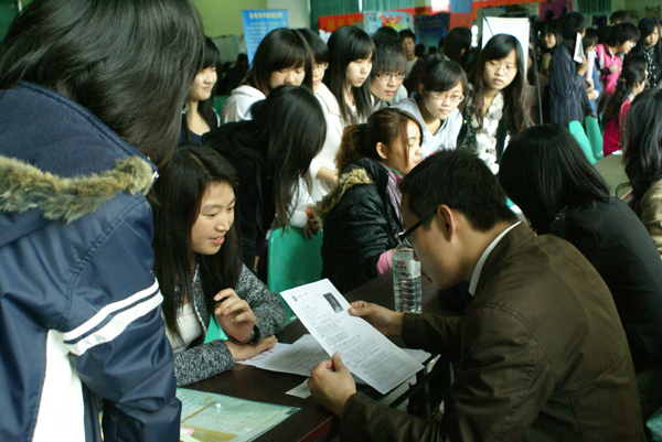 12月1日,学院2011届毕业生就业供需见面会在就业推介室隆重举行。冠达星、喜得龙、劲霸、冠捷科技、达利集团、新华都和新概念英语等一百五十多家知名企业为招聘会提供包括管理、营销、IT、化工、食品和服装等几十个种类、近2000个的就业岗位。