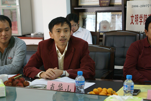 11月11日,由福建师范大学后勤管理处戴绍明处长、教务处陈祖祺副处长、文明办范庆洪主任、组织部邱海锋、纪委阮传瞰组成的检查小组对学院2009-2010学年开展精神文明建设工作进行检查评估。学院在第一会议室召开了精神文明先进单位创建汇报会。学院院长郭丹、党委常务副书记林国庆、副院长肖华山、党委副书记陈振祯、副院长周勇军、董事长助理戴景星、各系系主任、各职能部门负责人等参加了汇报会。