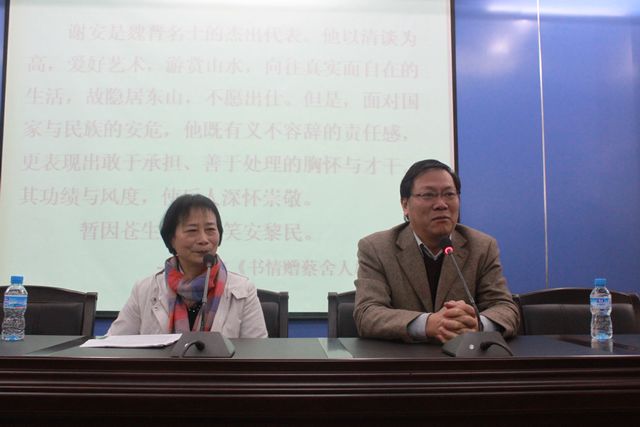 12月23日晚,湖北大学蒋方教授应邀于我院图书馆学术报告厅做了以“风流丞相谢安石”为主题的讲座,讲座由郭丹院长主持。