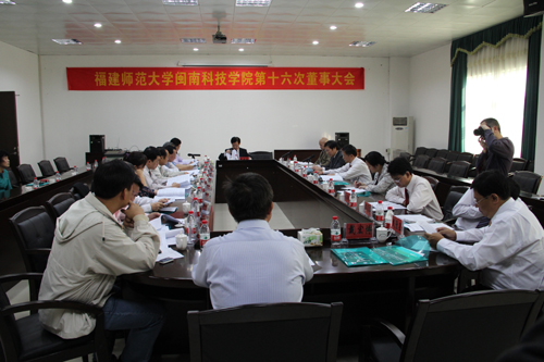11月14日下午,我院召开第十六次董事大会。学院董事长戴宏达,名誉董事长林国端、苏世选,常务副董事长戴新民,副董事长、福建师大副校长许明及全体董事参加了会议。会议由戴宏达董事长主持。