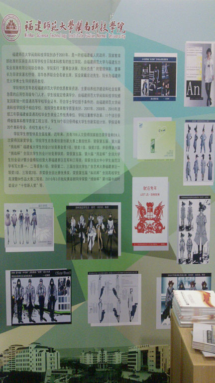 秉承着文博会“一脉传承、创意未来”的主题,我院展区着力展示了广告专业学生别出心裁的广告创意与服装设计专业学生独具匠心的获奖作品。图文并茂,生动形象的展示成功吸引了不少海峡两岸商家、群众和青年朋友的关注。作品产业化作为我院展区的一大亮点,更是获得了众多企业的青睐。不少企业纷纷表示有意向参加我院将于11月份举办的校园招聘会。