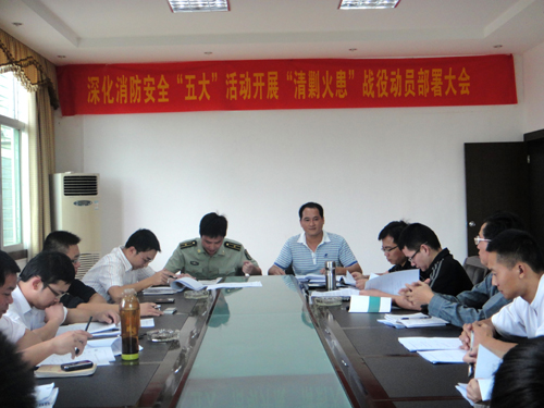 随后,人武部副部长苏清山宣读了学院《关于成立深化消防安全“五大”活动开展“清剿火患”战役工作领导小组的通知》,各部室负责人分别在会上积极献策、踊跃发言。