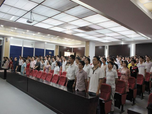 表彰大会在整齐嘹亮的国歌声中拉开序幕。郭丹院长做了热情洋溢的致辞,对学院近年来取得的一系列成果表示肯定,对学院的发展发表自己的意见,并向全体教师表达了教师节的问候。党委常务副书记林国庆宣读了在2010-2011学年获得“三育人”先进个人、“师德之星”、“优秀班主任”的获表彰名单,并提名表彰计算机系主